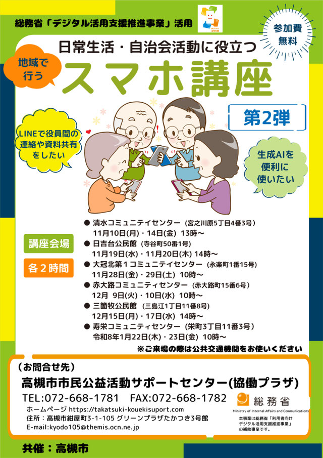 お住いの近くの公民館・コミュニテイセンターで受講いただけます!